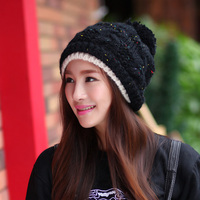 冬季帽子女 韩版 潮可爱针织毛线帽子 秋冬天女士加厚加绒护耳帽