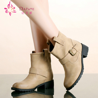 Daphne/达芙妮14年秋冬女鞋骑士靴 新款低方跟扣带休闲女短靴