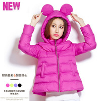 韩国代购2014冬装新款外套 米奇米老鼠耳朵羽绒棉衣 加厚棉服女
