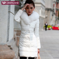 戈凌蓝 专柜正品2014冬装新款 韩版修身显瘦狐狸毛中长款羽绒服女