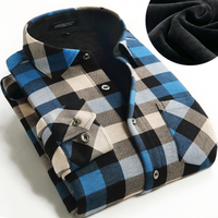 卡米贝菲 男士保暖衬衫男长袖加绒加厚格子保暖衬衣 青年修身男装