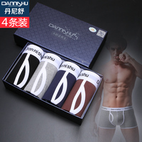 丹尼舒礼盒装透气纯棉中低腰大码男士内裤 平角裤 四角