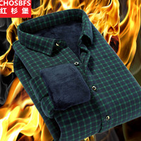 红杉堡男装2014冬季新款中年男士长袖保暖衬衫 加厚加绒格子衬衣