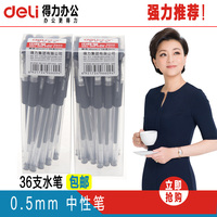 包邮 Deli/得力6609黑色水笔 带帽中性笔36支 0.5mm碳素笔 办公用