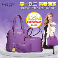 兰博丹尼 2014新款潮女士包 欧美纯色单肩手提女包 三件套十字纹