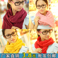 围巾韩国秋冬 女 纯色棉麻褶皱 超长糖果色丝巾披肩 围巾批发厂家