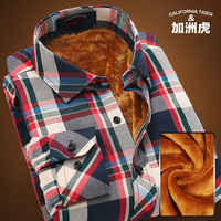 加洲虎2014冬季新款男士加厚 保暖衬衫 长袖格子男装修身加绒衬衣