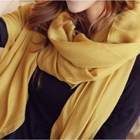 2013韩国女秋冬棉麻长围巾 韩版春秋热纯色百搭褶皱围巾 丝巾披肩