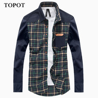 TOPOT 加厚保暖 秋季男士装长袖衬衫灯芯绒拼接格子修身韩版衬衣